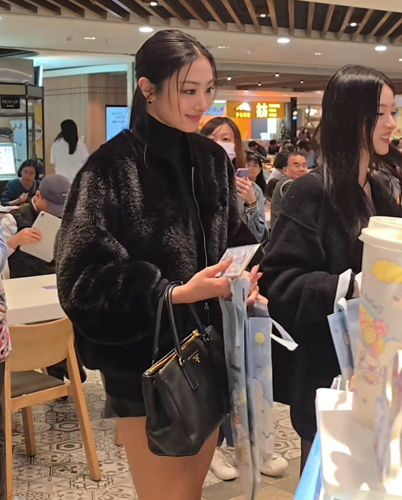 整團都像超模的MEOVV成員Gawon來台參加AAA時,在百貨公司美食街排隊買珍奶,拿的就是這款包包喔!