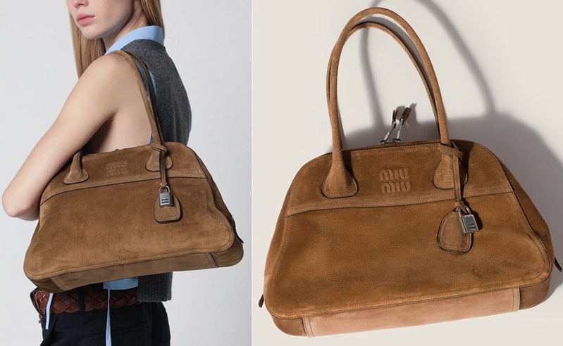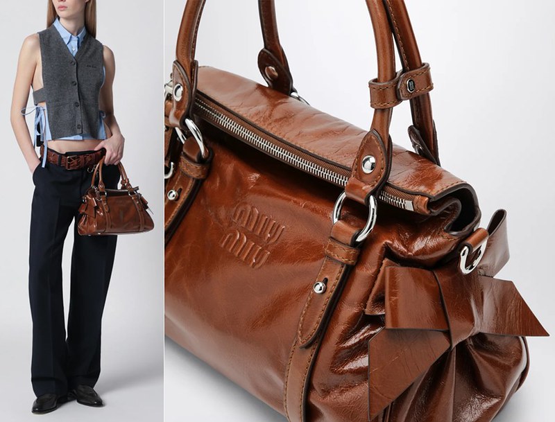 ❤️ (Miu Miu Medium top-handle bag in glossy Palisander leather),這款Miu Miu波士頓包超級可愛,應該是復刻之前爆紅的款式,側邊有蝴蝶結設計,拉鏈往上拉可以打開,平常則會自動折下,造型感十足!附有可調節背帶,台灣官網尚未上架,美國售價2990美元不含稅,根據TDF的定價策略,折後價應該是台灣定價的八折左右!同樣記得使用首購9折碼【WELCOME10】,並提前登入帳號。