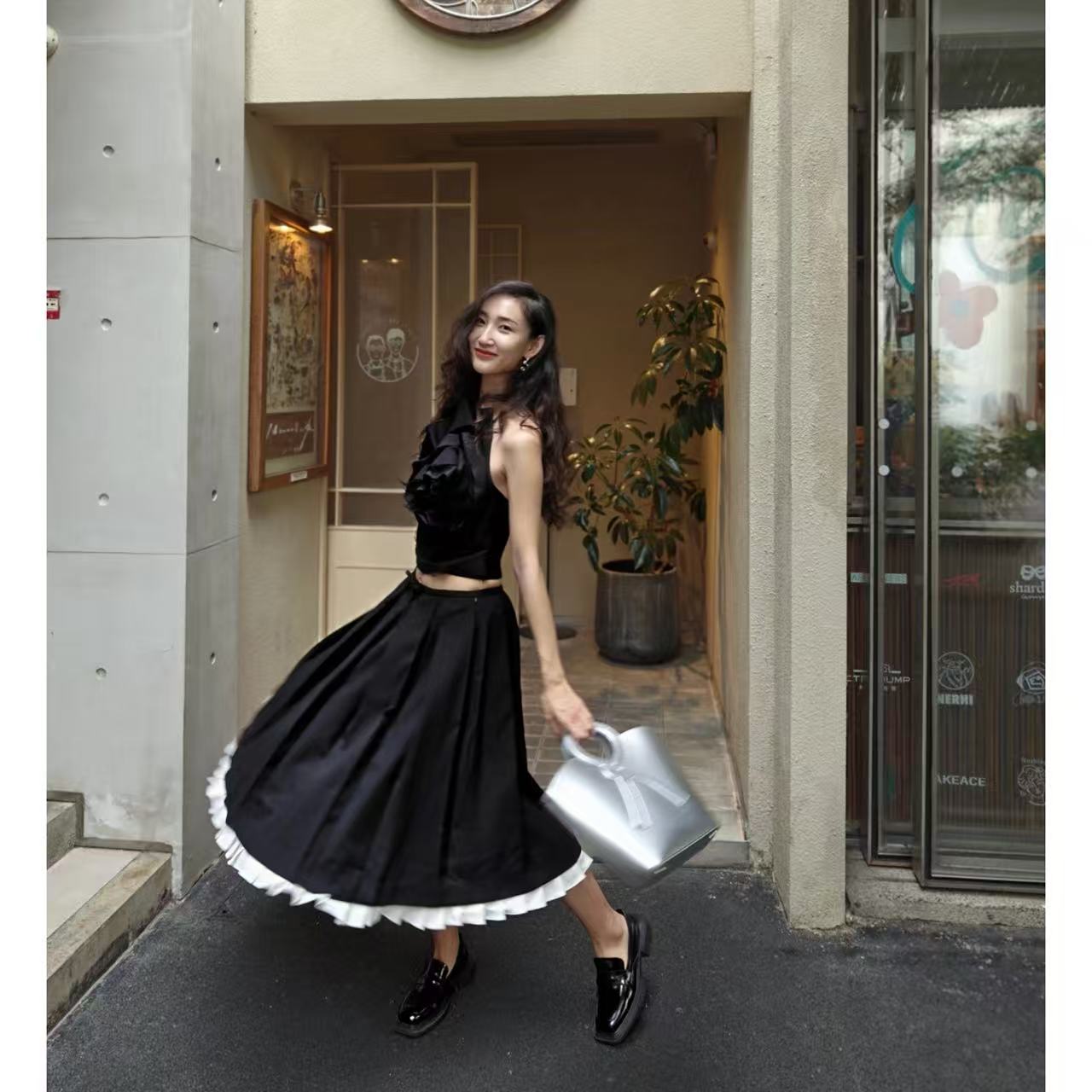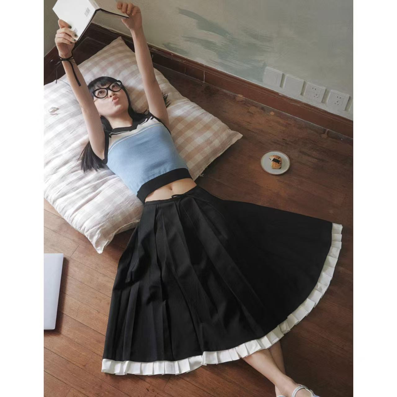 哈囉大家好,我是小迪!今天要介紹一款超有質感的單品——Shushu/Tong黑色百褶半裙。這款裙子採用挺括面料設計,自帶高級感,白色裙邊撞色細節更是點睛之筆,超大裙擺完美展現俏皮與千金氣質,非常值得入手!